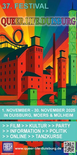 Vom 1. bis 30. November 2025 ist das 37. Festival "QUEER.LIFE.DUISBURG" mit 21 Veranstaltungen in Duisburg, Moers, Mülheim und Oberhausen geplant.